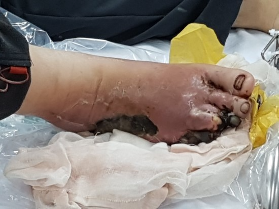 2월 7일 목요일 긴급 수술을 결정하고, 무릎 위 15cm를 절단하는 수술을 무사히 잘 마쳤습니다.