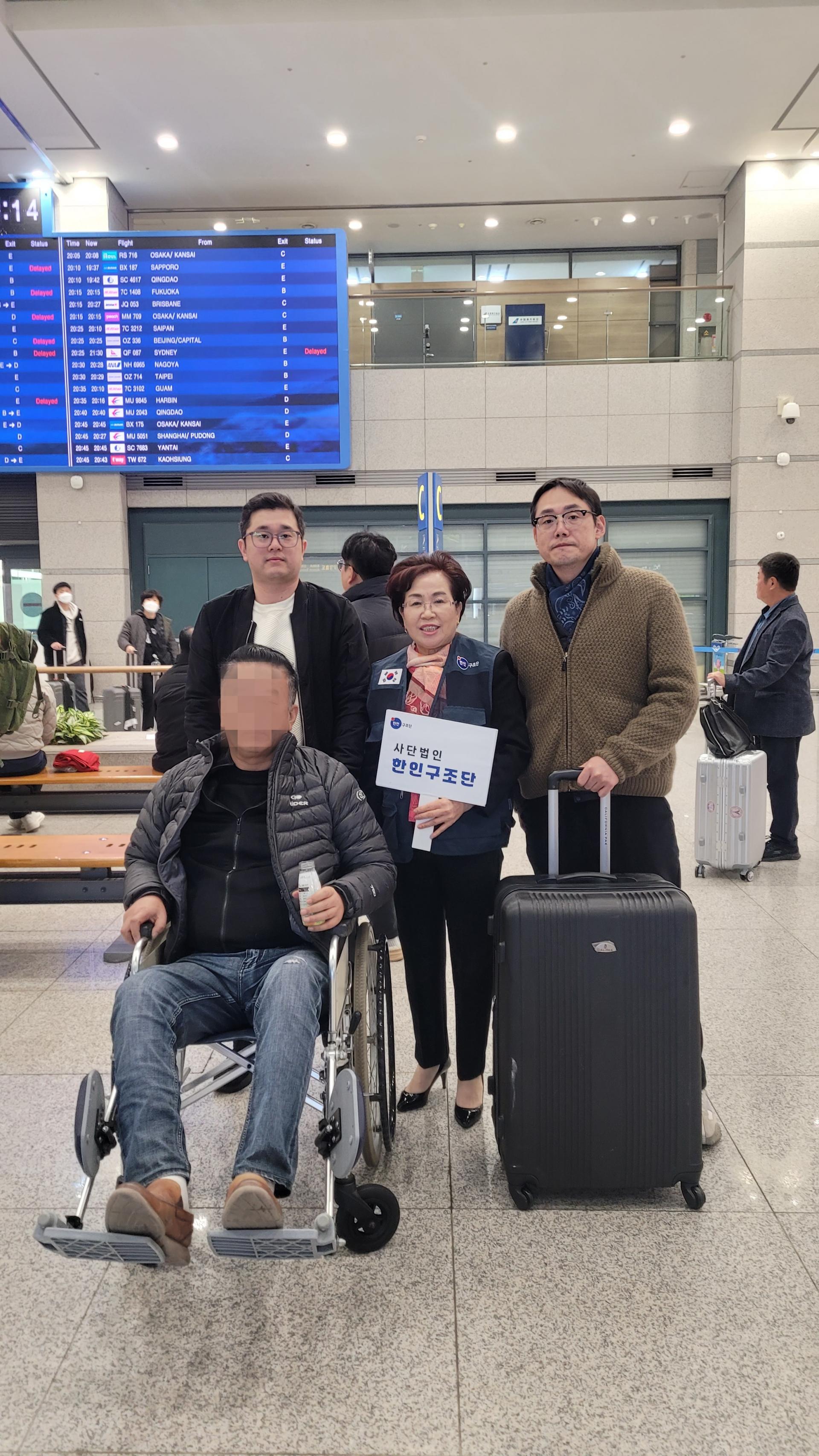보호자가 확인되지 않아 병원 측에서 대사관으로 연락하였고, 대사관에서 한인구조단에 지원요청을 보내셨습니다. 강oo님께서는 요양병원(협력기관)으로 이송되셔서 재활 중에 계십니다.
